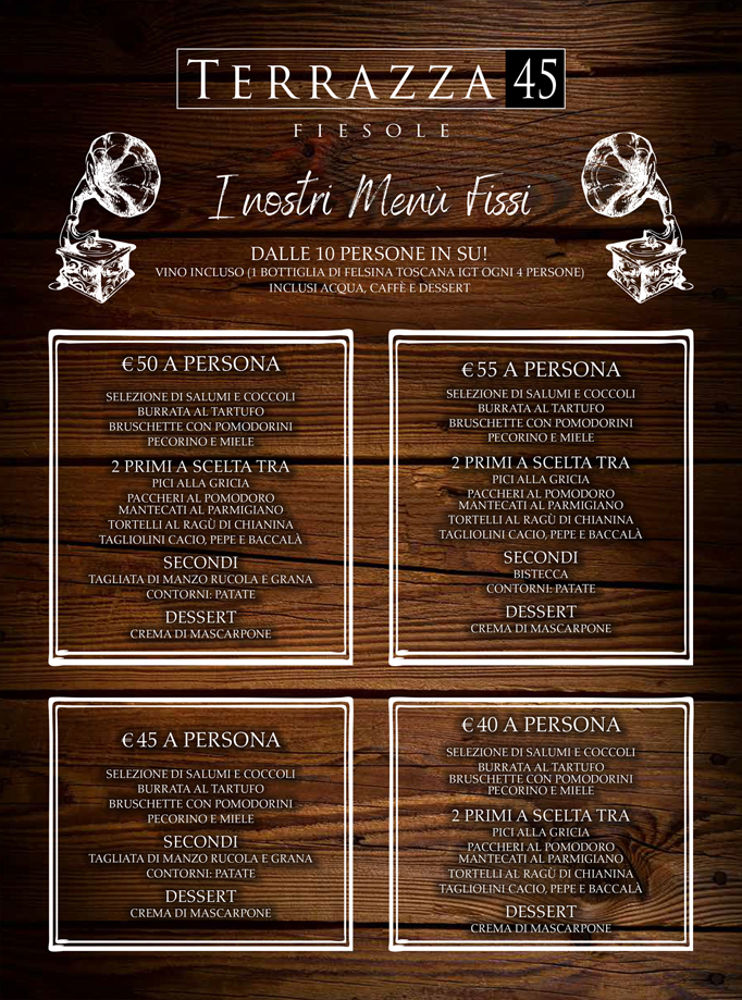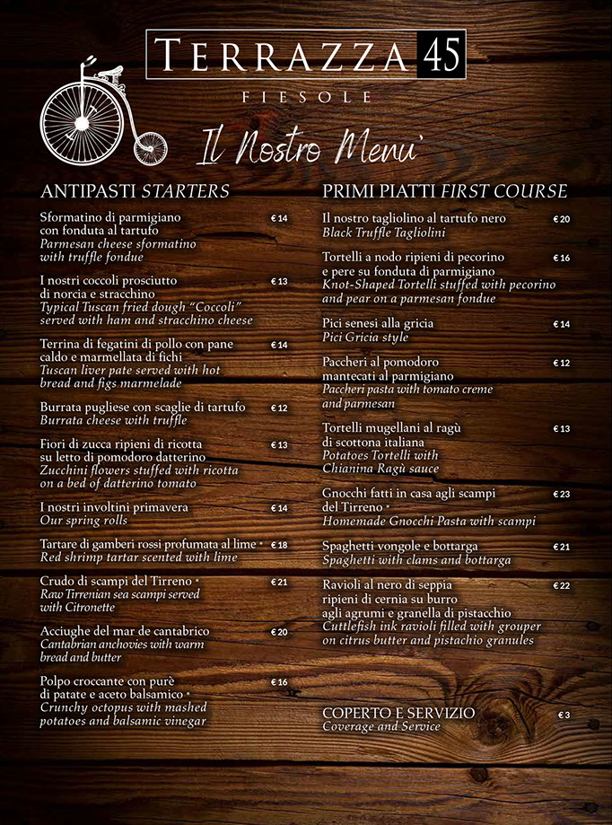 We respectfully accompany this show with our cuisine, with the mastery of the Chef that tries to belong to the quality of the Florentine tradition, revisited with conscious imagination to serve an authentic experience of the place. There is also a wide selection of wines, among the best that the Italian land can offer.