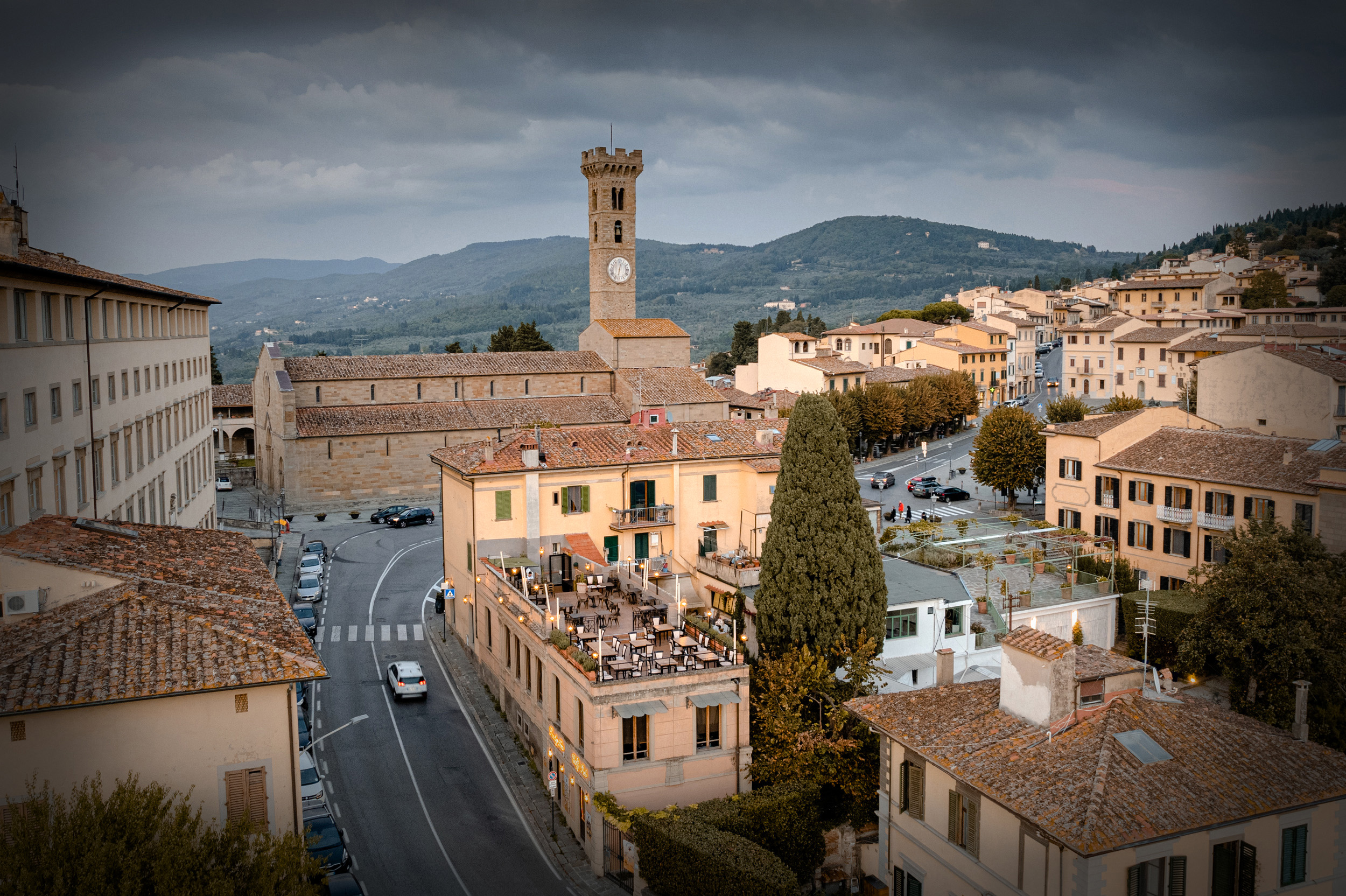 Situato nella piazza principale di Fiesole a pochi metri dall’anfiteatro il locale si compone di 2 sale interne con la più grande con circa 30 posti a sedere e la seconda con due finestre che affacciano sulla magnifica Firenze dispone di circa 20 posti seduta.