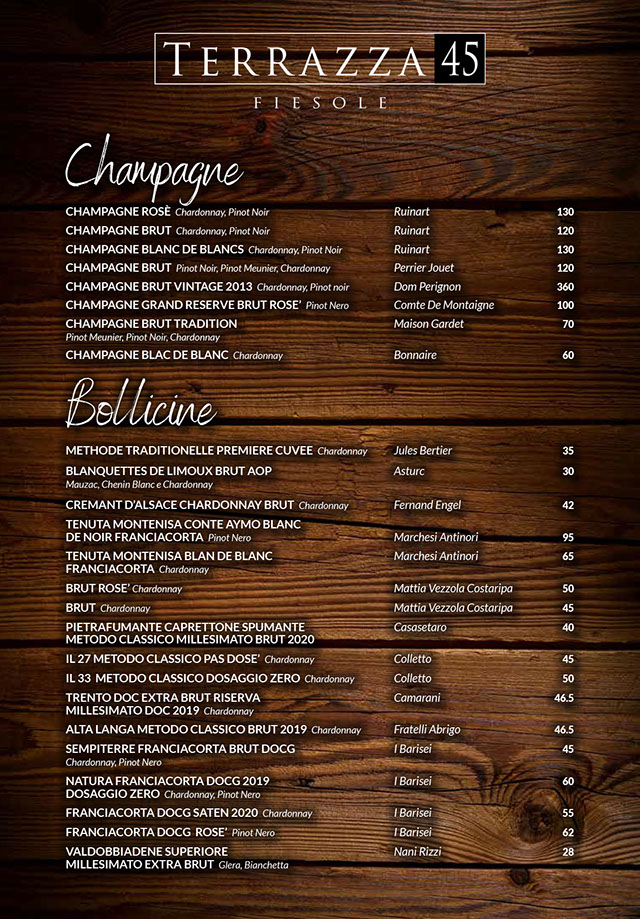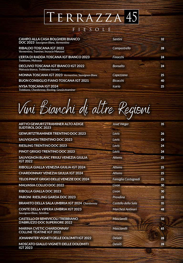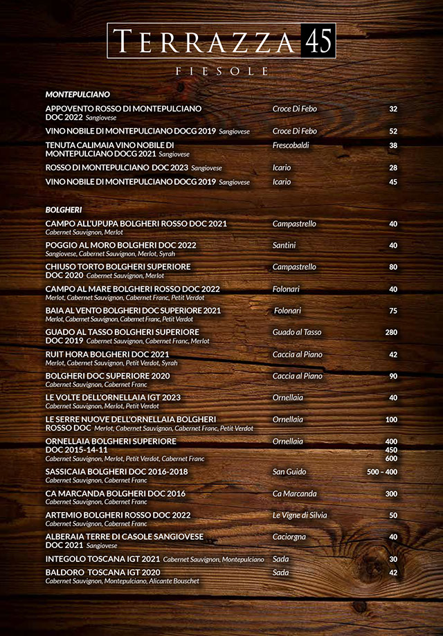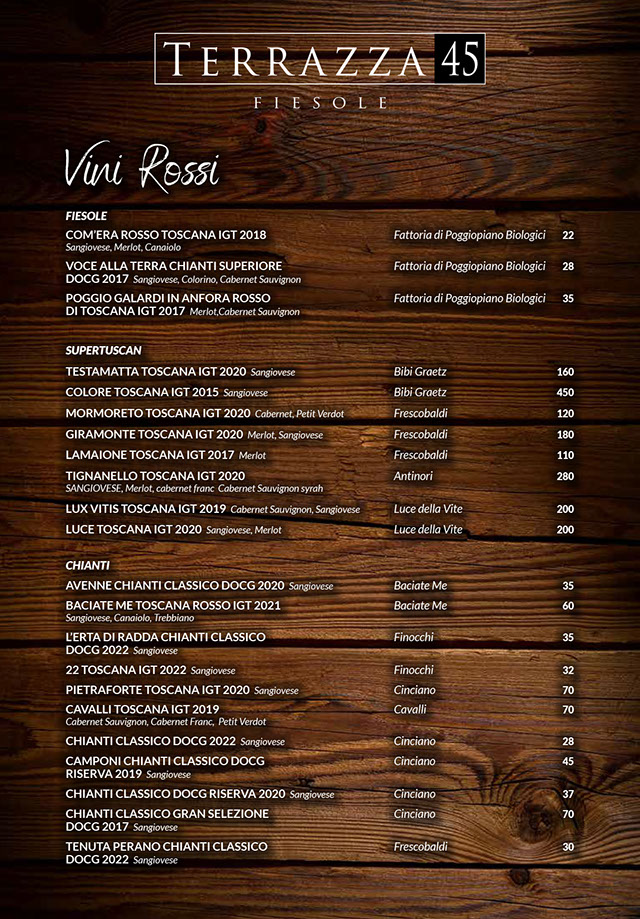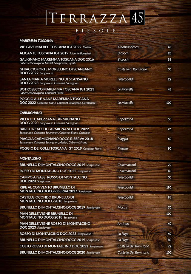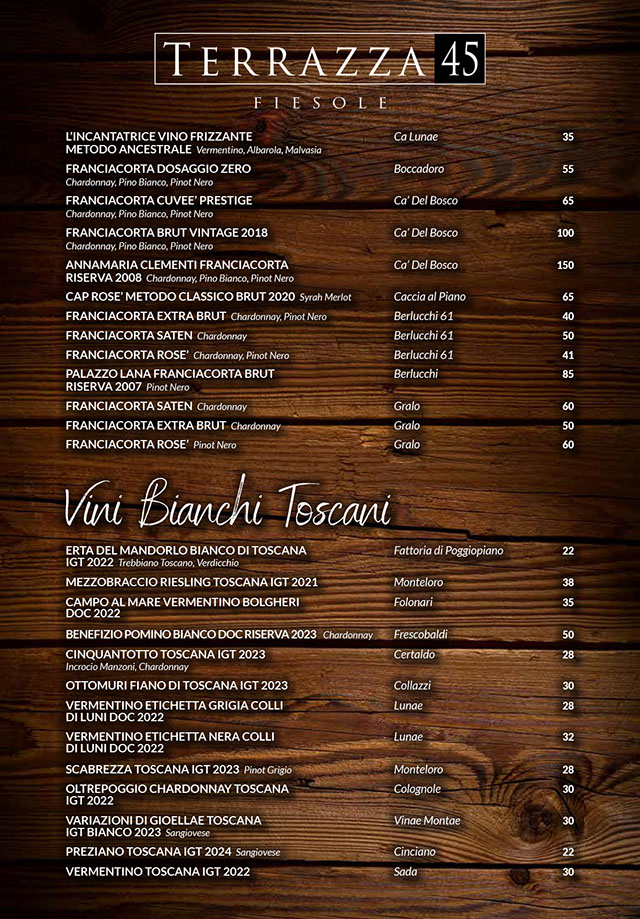 E non manca una vasta scelta di vini, fra i migliori che offre la terra italiana.